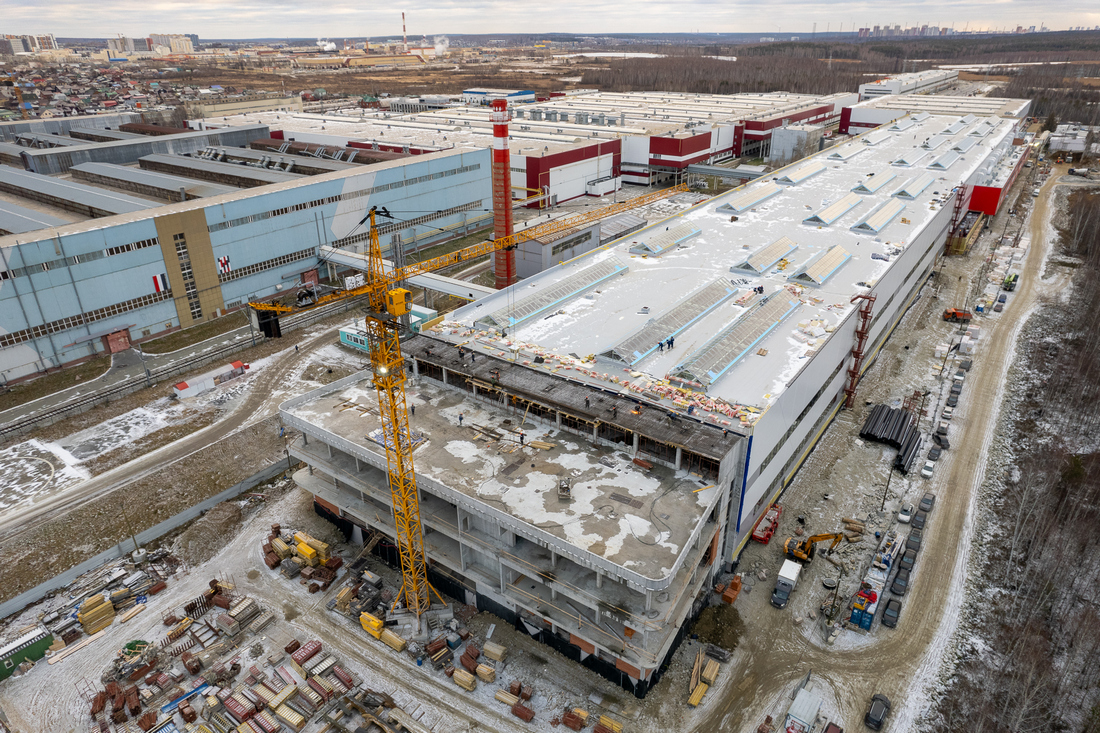В Верхней Пышме на территории завода «Уральские локомотивы» ведется строительство комплекса по производству высокоскоростных поездов (ВСП). Генеральный подрядчик – компания «Синара-Девелопмент».